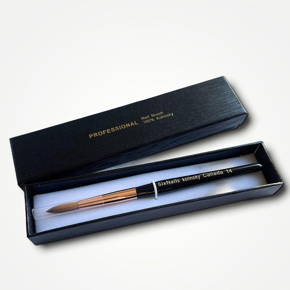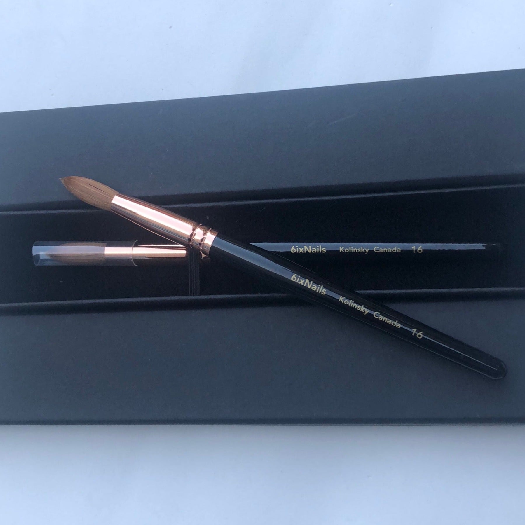 Size 14 and 16 are custom made from what we use every day. It made with Kolinsky hair, the thickness and the length of the brush are perfect to hold the monomer inside.